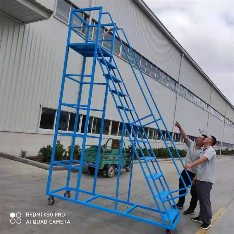 登高车是仓储物流中使用的一种登高作业设备,类似于登高扶梯的作用。可方便人员站在车平台上实现存取货物等作业行为。
